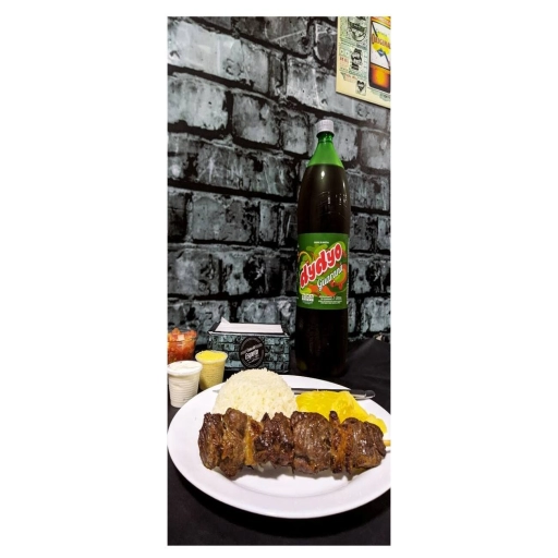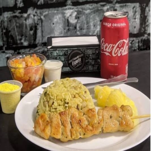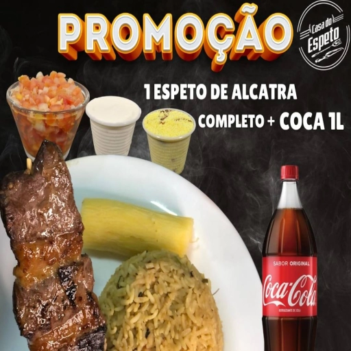 Espeto de carne alcatra completeo mais 1 coca cola de 1 litro