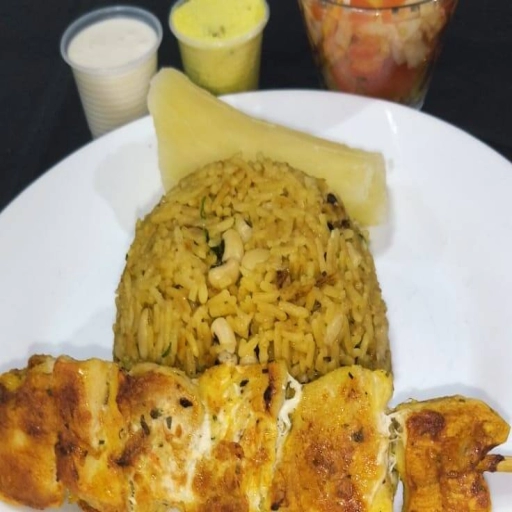 ACAOMPANHAMENTO ESPETO DE LINHUIÇA APIMENTADA ARROZ BRANCO OU BAIAO DE DOIS FINA FAROFA , CREME DE ALHO , VINAGRETE... Ver completo
